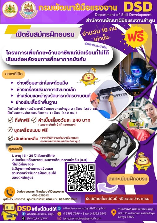#สำนักงานพัฒนาฝีมือแรงงานลำพูน ประกาศรับสมัครฝึกอบรม การฝึกเตรียมเข้าทำงาน