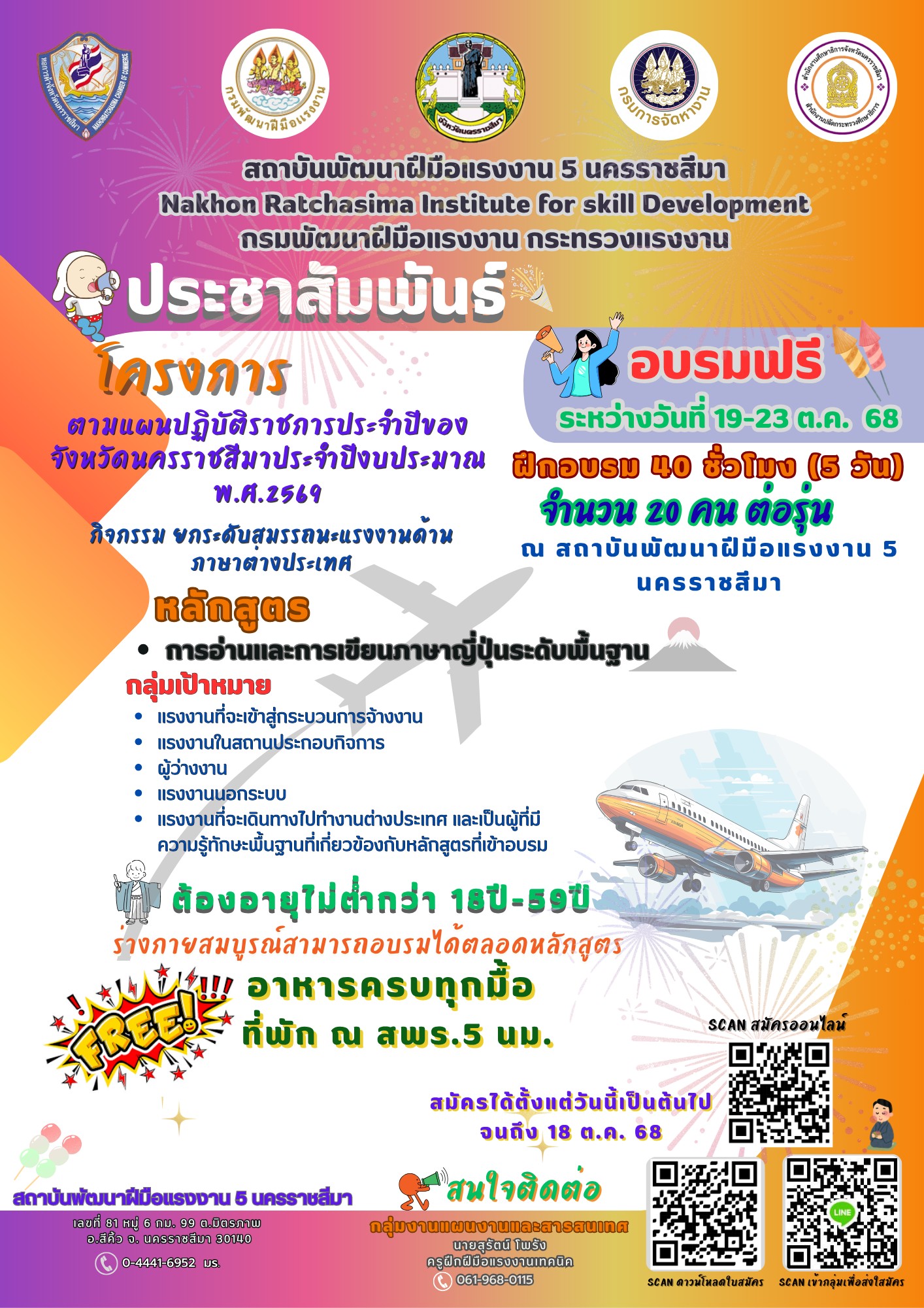 ?? สถานที่อบรม: สถาบันพัฒนาฝีมือแรงงาน 5 นครราชสีมา