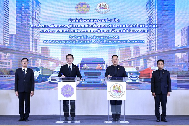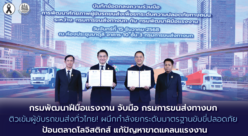 กรมพัฒนาฝีมือแรงาน จับมือ กรมการขนส่งทางบก ติวเข้มผู้ขับรถขนส่งทั่วไทย! ผนึกกำลังยกระดับมาตรฐานขับขี่ปลอดภัย ป้อนตลาดโลจิสติกส์ แก้ปัญหาขาดแคลนแรงงาน