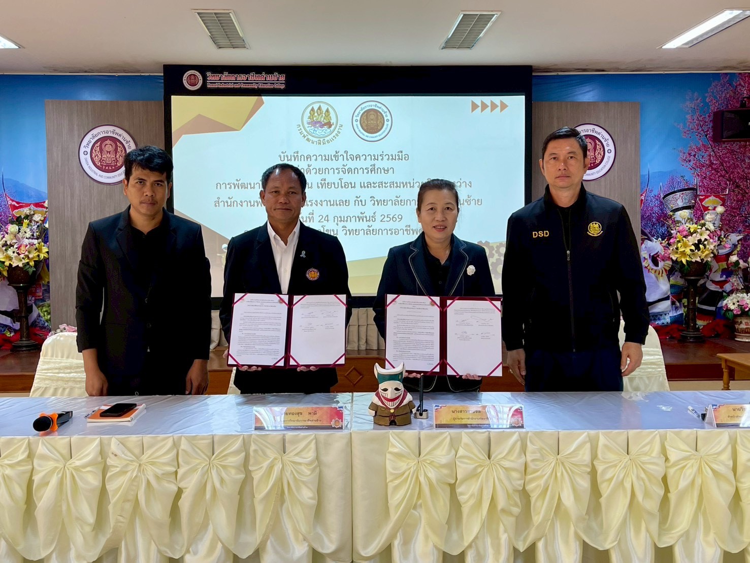 24 กุมภาพันธ์ 2569 เวลา 10.00 น. นางสาวสายชล ตันอำนวย ผู้อำนวยการสำนักงานพัฒนาฝีมือแรงงานเลย ลงนามบันทึกความเข้าใจความร่วมมือการจัดการศึกษาการพัฒนาฝีมือแรงงาน เทียบโอน และสะสมหน่วยกิตในระบบคลังหน่วยกิต