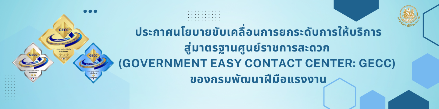 ประกาศนโยบายขับเคลื่อนการยกระดับการให้บริการสู่มาตรฐานศูนย์ราชการสะดวก (Government Easy Contact Center: GECC) ของกรมพัฒนาฝีมือแรงงาน