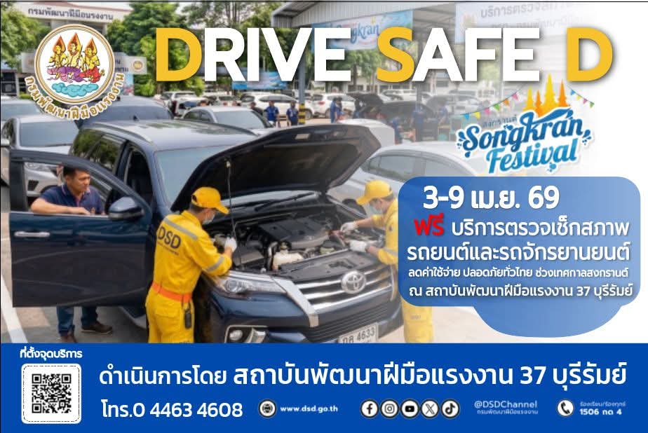 สถาบันพัฒนาฝีมือแรงงาน 37 บุรีรัมย์ ขอเชิญชวนประชาชนเข้ารับบริการตามโครงการ Drive Safe D