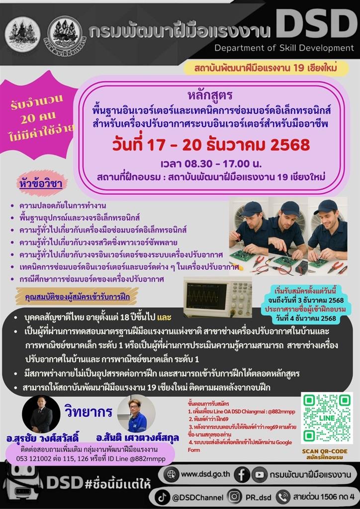 สถาบันพัฒนาฝีมือแรงงาน 19 เชียงใหม่ ขอเชิญเข้าร่วม โครงการพัฒนาศักยภาพแรงงานขับเคลื่อนการเติบโตภาคเศรษฐกิจและสังคมอย่างยั่งยืน