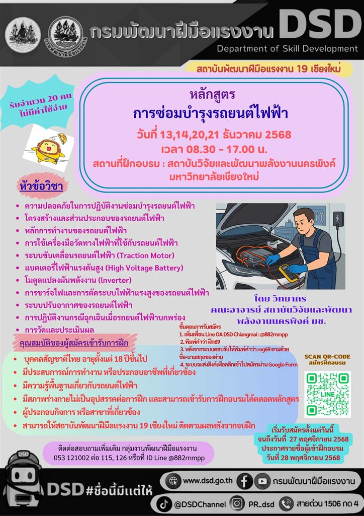 หลักสูตร การซ่อมบำรุงรถยนต์ไฟฟ้า จำนวน 30 ชั่วโมง
