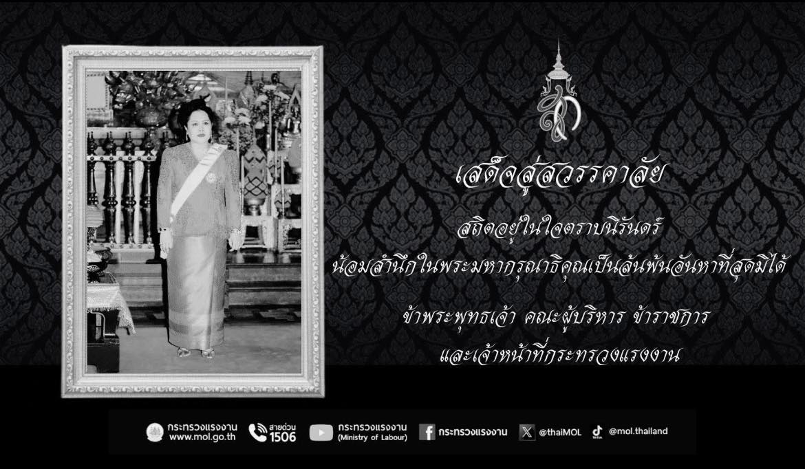 เสด็จสู่สวรรคาลัย สถิตอยู่ในใจตราบนิรันดร์ น้อมสำนึกในพระมหากรุณาธิคุณอย่างหาที่สุดมิได้ ข้าพระพุทธเจ้า คณะผู้บริหาร ข้าราชการ และเจ้าหน้าที่กรมพัฒนาฝีมือแรงงาน กระทรวงแรงงาน