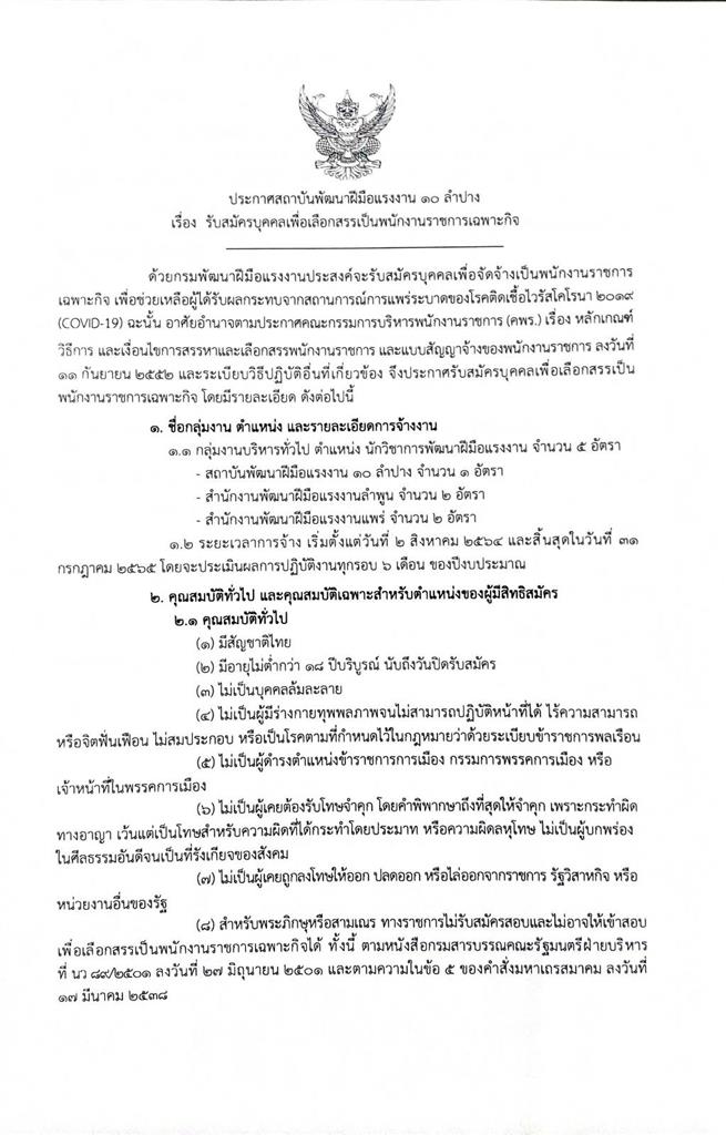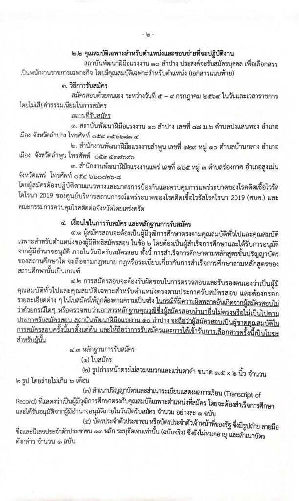 รับสมัครบุคคลเพื่อเลือกสรรเป็นพนักงานราชการเฉพาะกิจ ตำแหน่ง นักวิชาการพัฒนาฝีมือแรงงาน อัตราว่าง 2 อัตรา