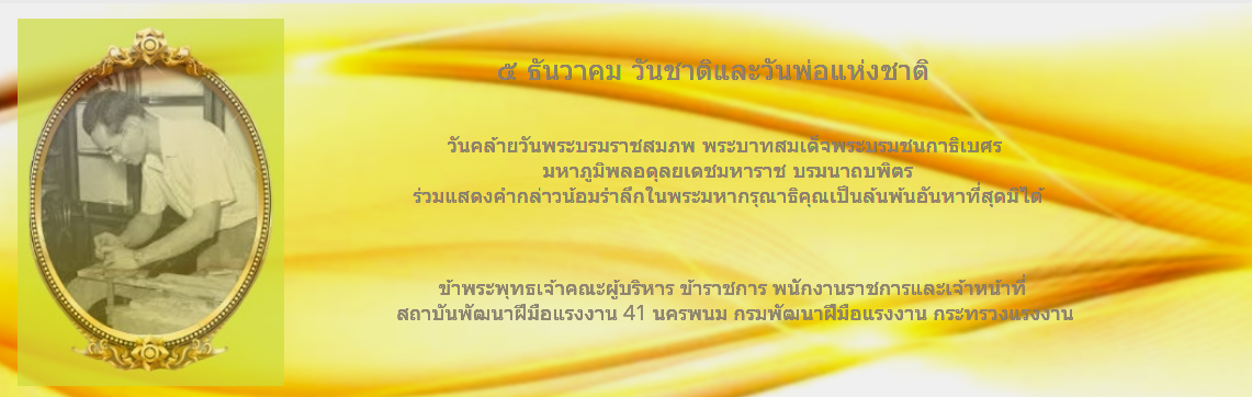 ข้าพระพุทธเจ้าคณะผู้บริหาร ข้าราชการ พนักงานราชการและเจ้าหน้าที่ สถาบันพัฒนาฝีมือแรงงาน 41 นครพนม กรมพัฒนาฝีมือแรงงาน กระทรวงแรงงาน