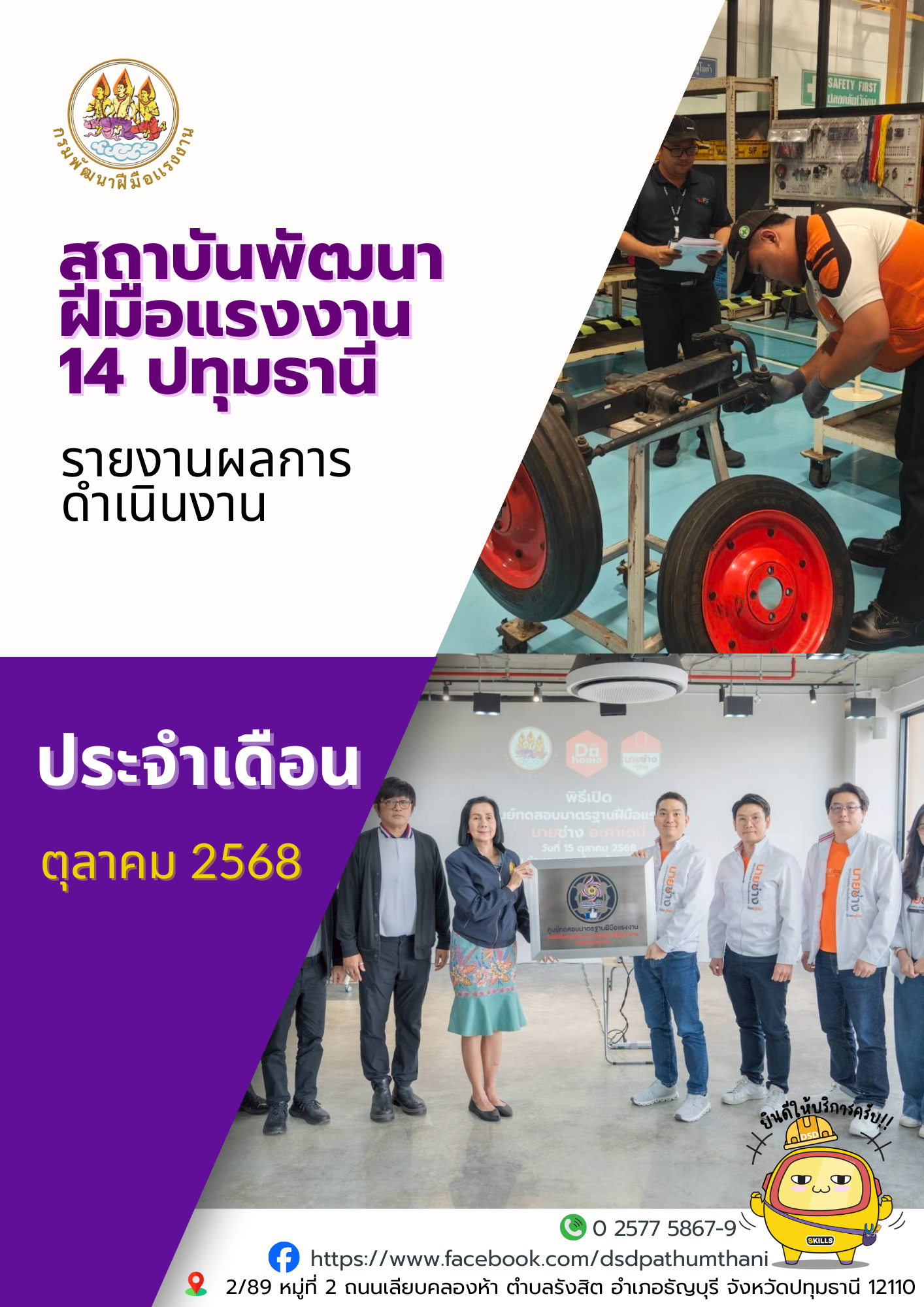 ผลการดำเนินงานสถาบันพัฒนาฝีมือแรงงาน 14 ปทุมธานี ประจำเดือนตุลาคม 2568