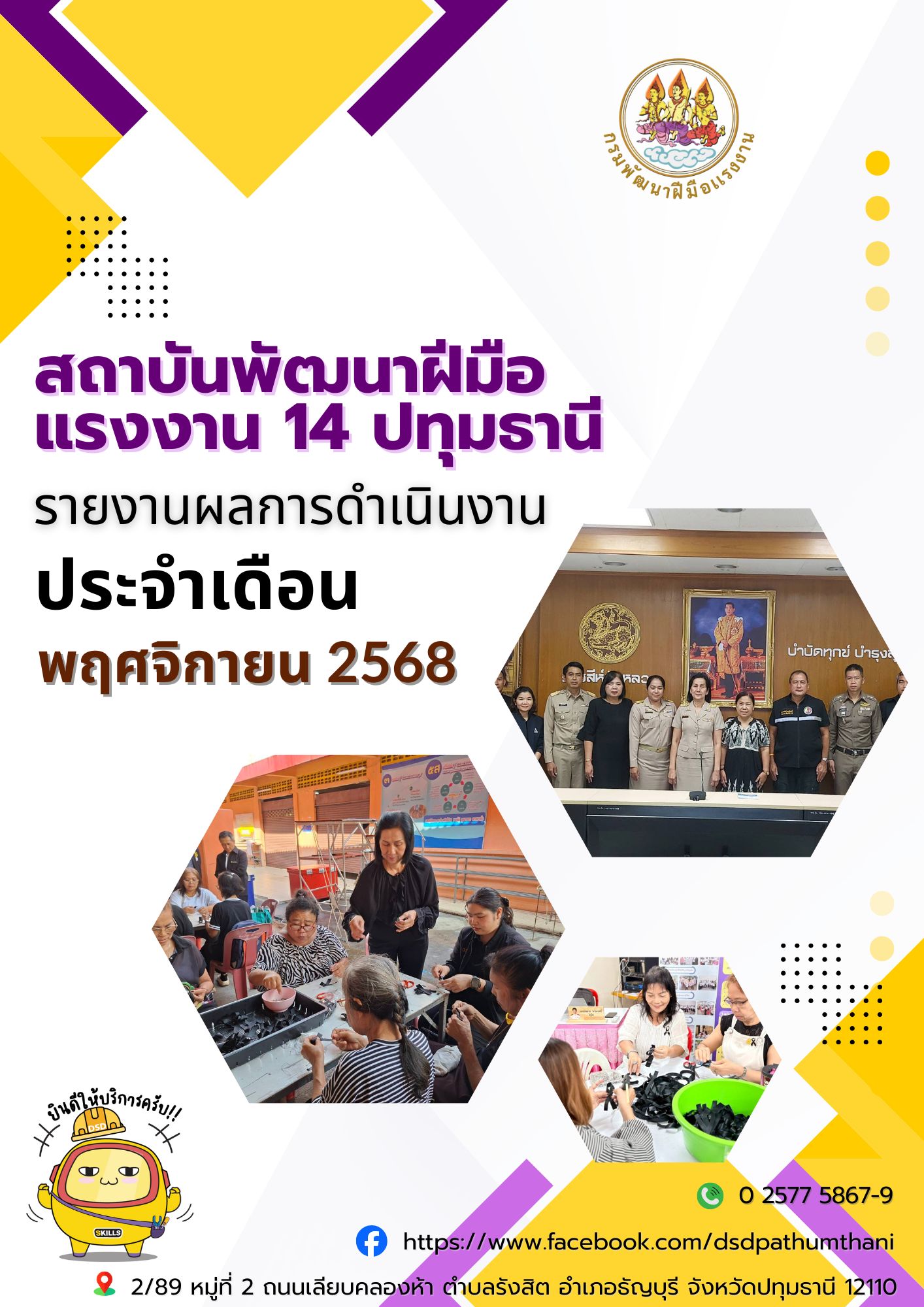 ผลการดำเนินงานสถาบันพัฒนาฝีมือแรงงาน 14 ปทุมธานี ประจำเดือน พฤศจิกายน 2568