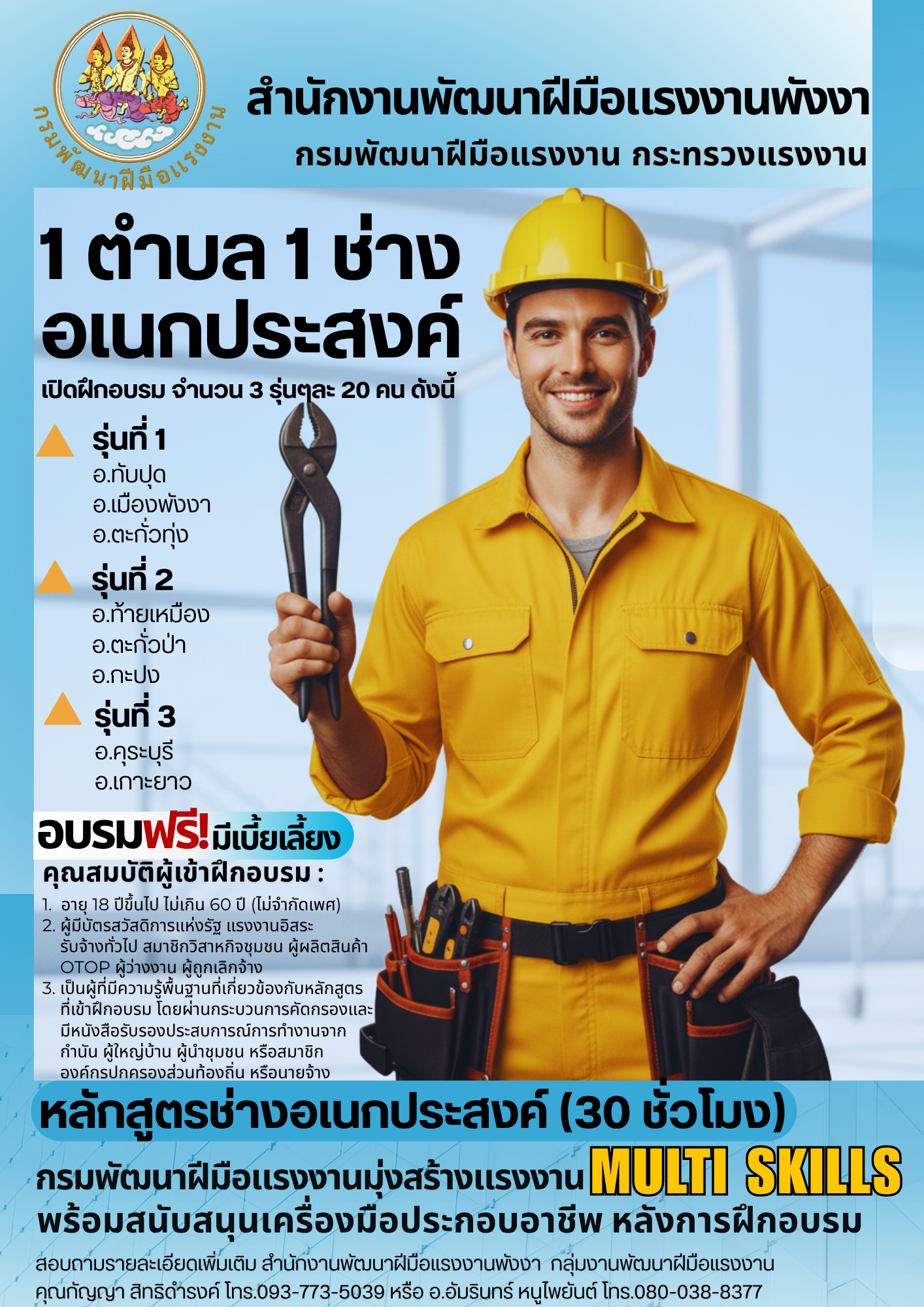 #ช่างอเนกประสงค์ #กรมพัฒนาฝีมือแรงงาน #สำนักงานพัฒนาฝีมือแรงงานพังงา