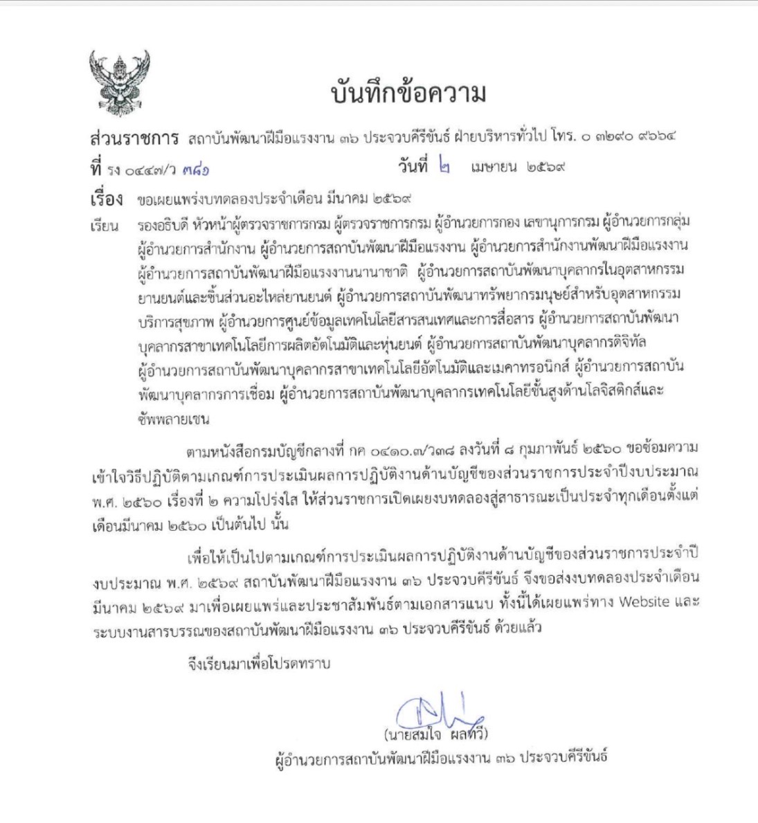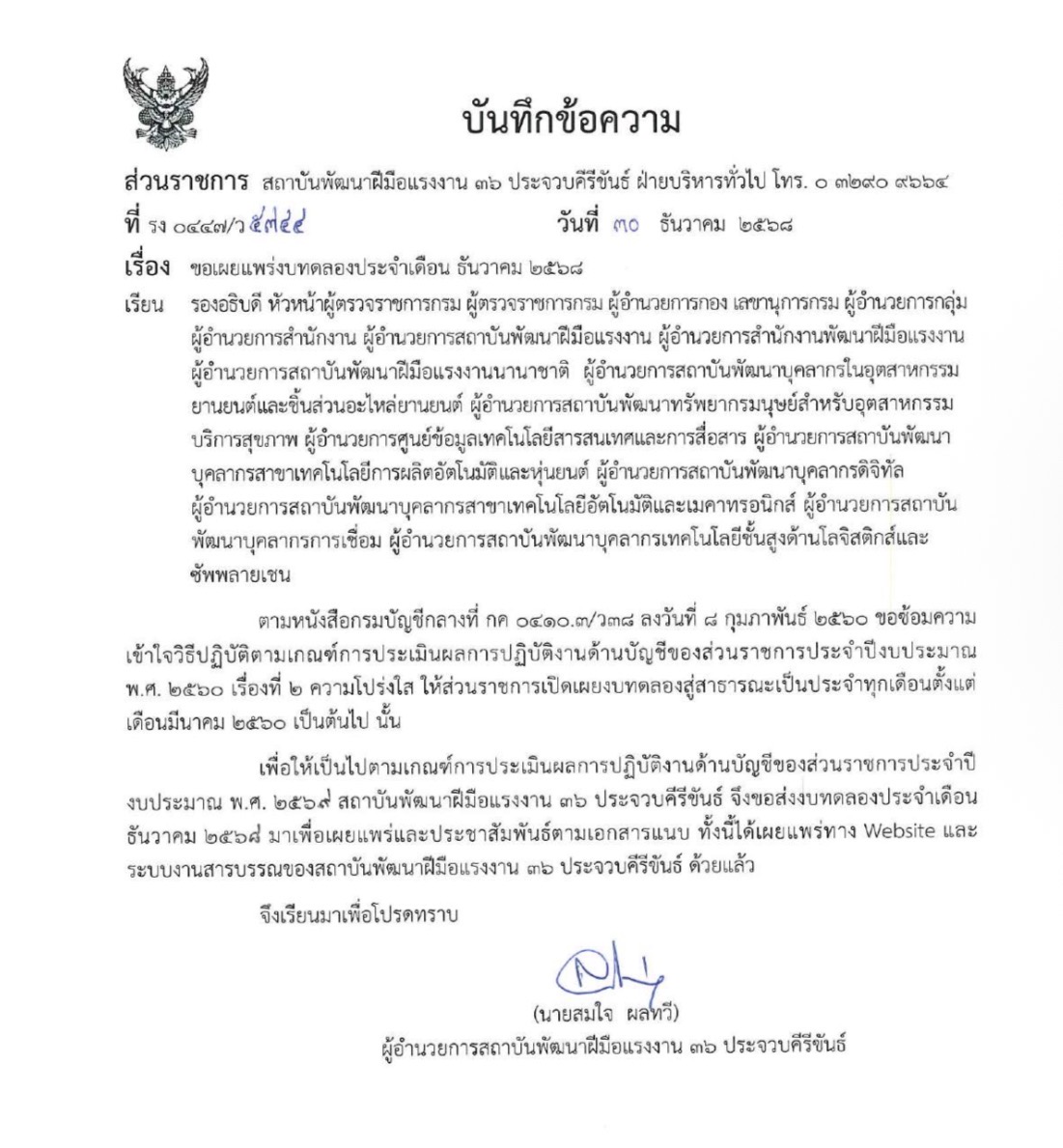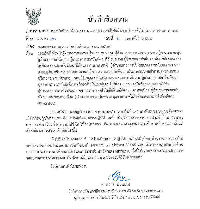 เผยแพรางบทดลองงาน ประจำเดือนมกราคม 2568