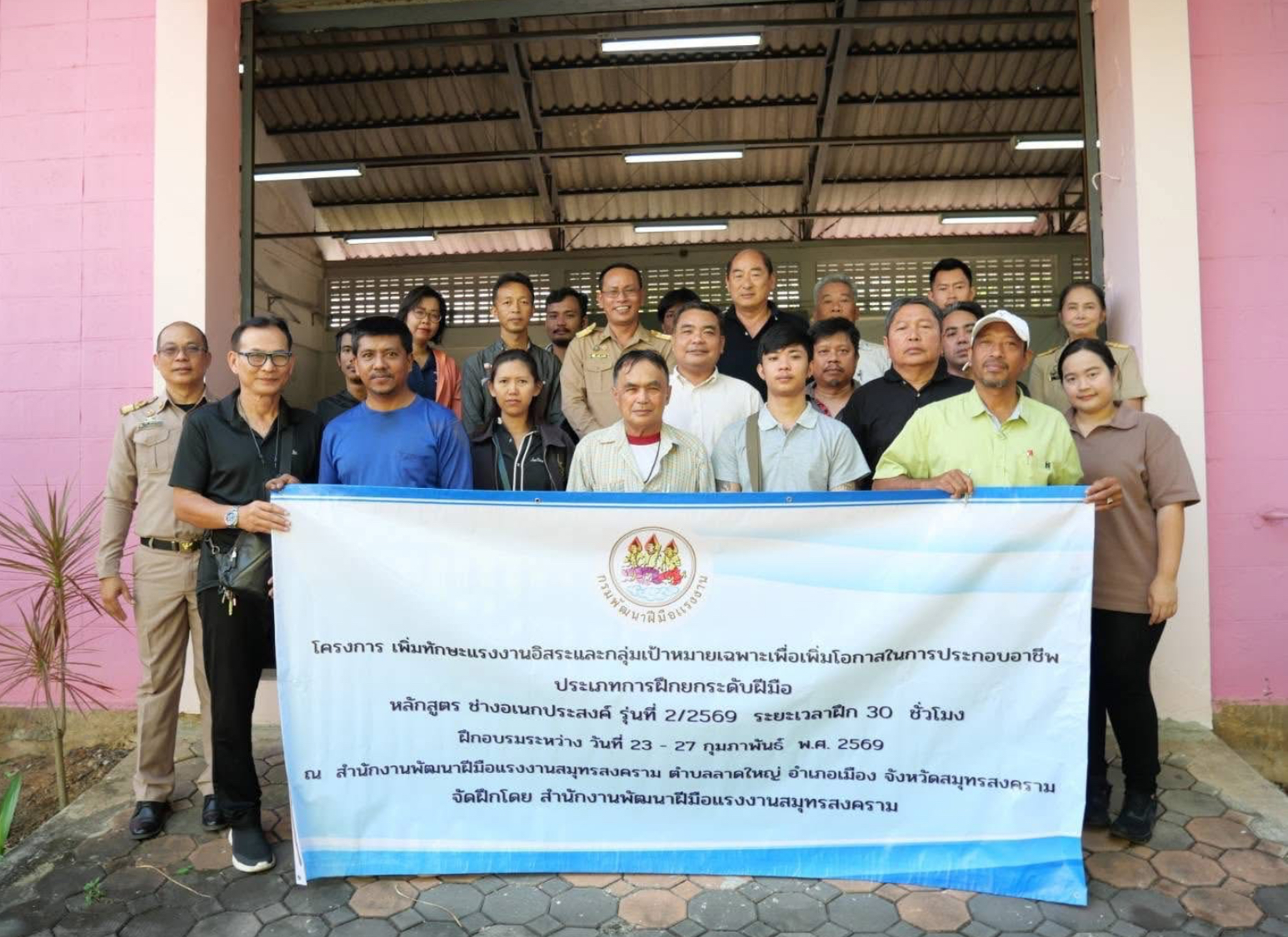 สนพ.สมุทรสงคราม เปิดฝึกอบรม โครงการเพิ่มทักษะแรงงานอิสระและกลุ่มเป้าหมายเฉพาะเพื่อเพิ่มโอกาสในการประกอบอาชีพ ประเภทการฝึกยกระดับฝีมือ หลักสูตร ช่างอเนกประสงค์ รุ่นที่ 2/2569 จำนวน 19 คน