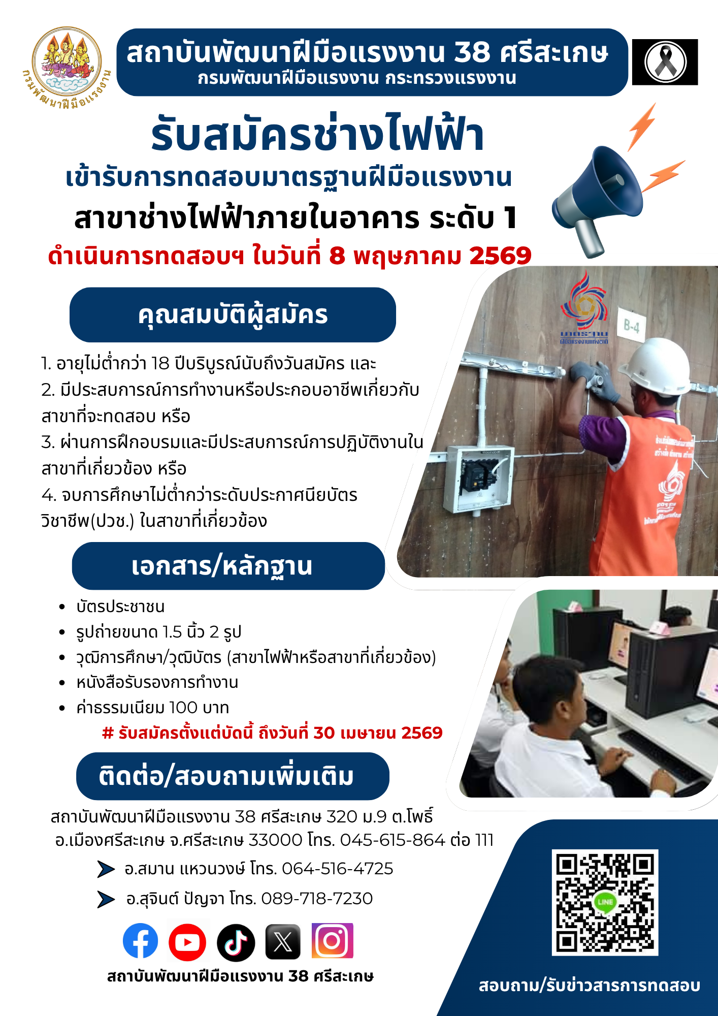 สพร. 38 ศรีสะเกษ ประเมินช่างไฟฟ้าภายในอาคาร ครั้งที่ 7 ปีงบประมาณ 2569