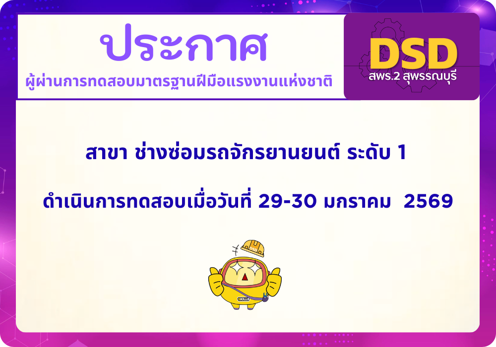 ชื่อวีดิทัศน์: วันที่ 25 มกราคม 2567 สพร. 2 สุพรรณบุรี ดำเนินการประเมินความรู้ความสามารถ สาขาช่้างไฟฟ้าภายในอาคาร ระดับ 1 จำนวน 16 คน
