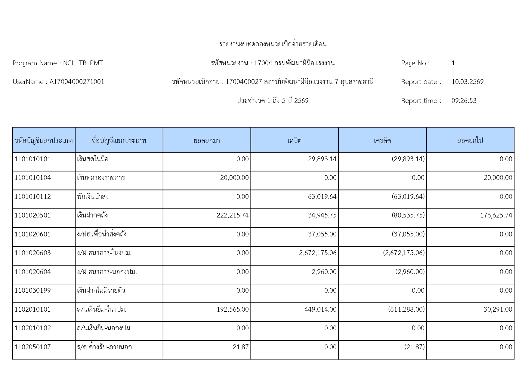 งบทดลองประจำเดือนกุมภาพันธ์ 2569