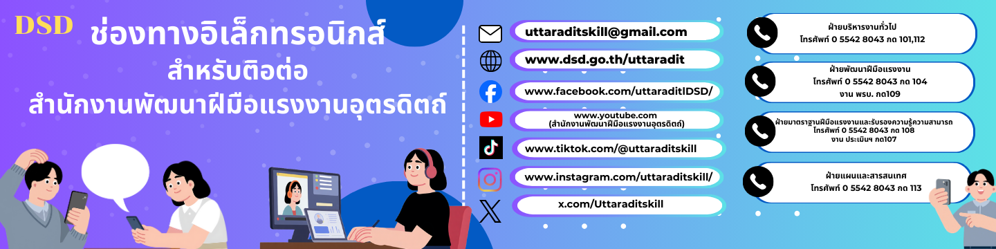 ช่องทางอิเล็กทรอนิกส์สำหรับติดต่อสำนักงานพัฒนาฝีมือแรงงานอุตรดิตถ์