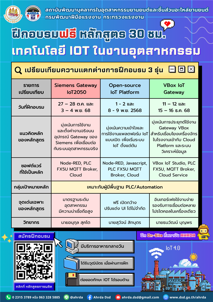 • รุ่นที่ 1: วันที่ 27 – 28 ต.ค. และ 3 – 4 พ.ย. 2568 (ใช้ Siemens Gateway IoT2050)