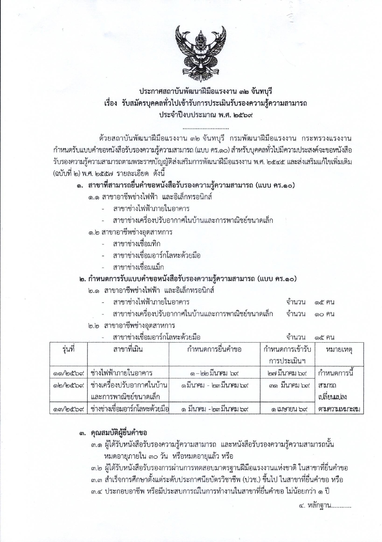 รับสมัครบุคคลทั่วไปเข้ารับการประเมินรับรองความรู้ความสามารถ ประจำปีงบประมาณ พ.ศ. 2569