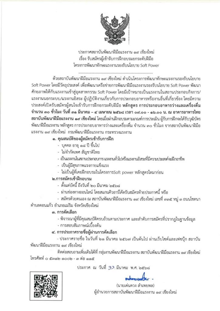 โครงการพัฒนาทักษะแรงงานรองรับนโยบาย Soft Power