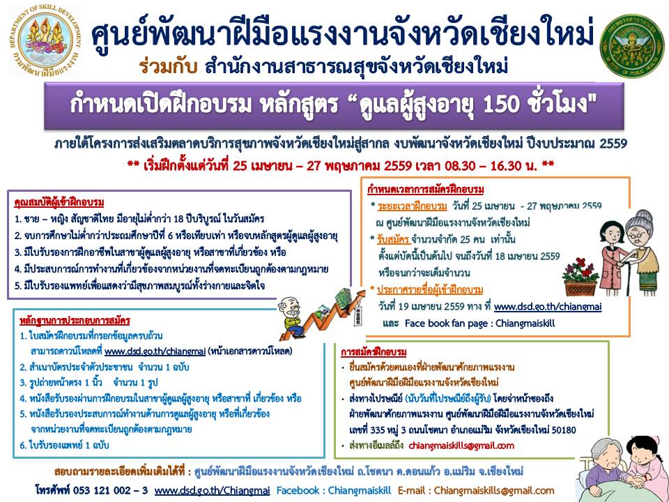 รับสมัครผู้เข้าอบรมหลักสูตร "ผู้ดูแลผู้สูงอายุ 150 ชั่วโมง" ฟรี.......