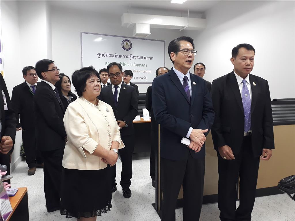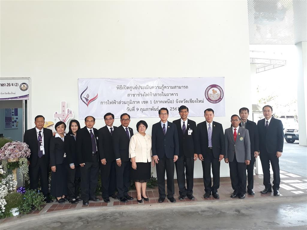 วันศุกร์ที่ 9 กุมภาพันธ์ 2561 นางสาวรุจีรุจน์จิณี สุภวิรีย์ ผู้อำนวยการสถาบันพัฒนาฝีมือแรงงาน 19 จังหวัดเชียงใหม่ พร้อมด้วยนายเอกชัย ศักดิ์ทัศนา รองผู้ว่าการ การไฟฟ้าส่วนภูมิภาค ร่วมตัดริบบิ้นในพิธีเปิดศูนย์ประเมินความรู้ ความสามารถ สาขาช่างไฟฟ้าภายในอาคาร ประจำ PEA เขต 1 (ภาคเหนือ) จ.เชียงใหม่ ตามบันทึกข้อตกลงความร่วมมือว่าด้วยการพัฒนาบุคลากรด้านช่างไฟฟ้ากับกรมพัฒนาฝีมือแรงงาน โดยมีวัตถุประสงค์เพื่อเป็นการส่งเสริมและสนับสนุนมาตรฐานฝีมือแรงงาน การพัฒนาบุคลากรให้มีความรู้ ความสามารถ และทักษะให้สูงขึ้น ทันต่อการเปลี่ยนแปลง ของเทคโนโลยี รองรับต่อการขยายตัวของระบบเศรษฐกิจในอนาคต และรองรับการเป็นประชาคมเศรษฐกิจอาเซียน (AEC) และตามประกาศกระทรวงแรงงาน เรื่อง กำหนดสาขาอาชีพ ที่อาจเป็นอันตรายต่อสาธารณะ ซึ่งต้องดำเนินการโดยผู้ได้รับหนังสือรับรองความรู้ความสามารถเพื่อคุ้มครองป้องกันชีวิตและทรัพย์สินของประชาชน และประโยชน์สาธารณะ ณ สำนักงาน PEA เขต 1 (ภาคเหนือ) จ.เชียงใหม่ พร้อมด้วยนายธีรพงษ์ บุรีรักษ์ ผู้อำนวยการ PEA เขต 1 (ภาคเหนือ) จ.เชียงใหม่ หัวหน้าศูนย์ทดสอบความรู้ ความสามารถ สาขาช่างไฟฟ้าภายในอาคาร จากวิทยาลัยเทคนิคเชียงใหม่ วิทยาลัยเทคโนโลยีโปลิเทคนิคลานนาเชียงใหม่ และผู้บริหาร พนักงาน PEA ร่วมพิธี โดยมีนายวันชัย ยิ้มปราณี ผู้อำนวยการศูนย์ประเมินความรู้ความสามารถ สาขาช่างไฟฟ้าภายในอาคารฯ เป็นผู้กล่าวรายงาน