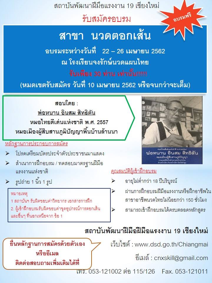✳️หลักสูตร นวดตอกเส้น ✳️ระหว่างวันที่ 22 - 26 เมษายน 2562(ปิดรับ 10 เมษายน 2562)