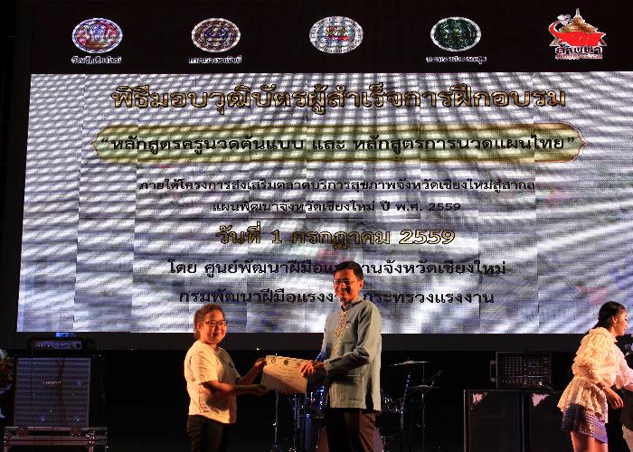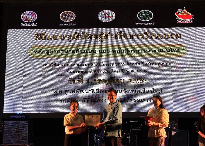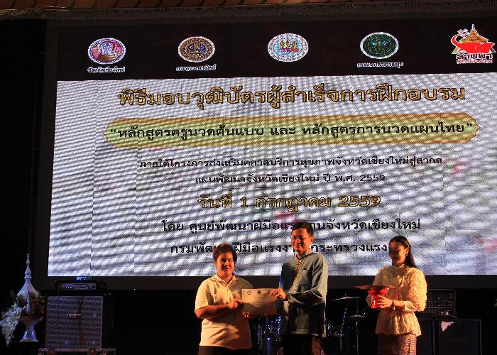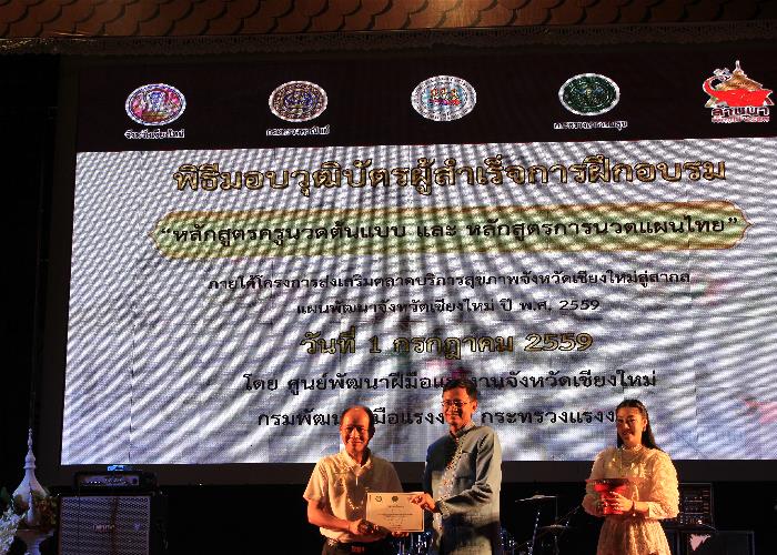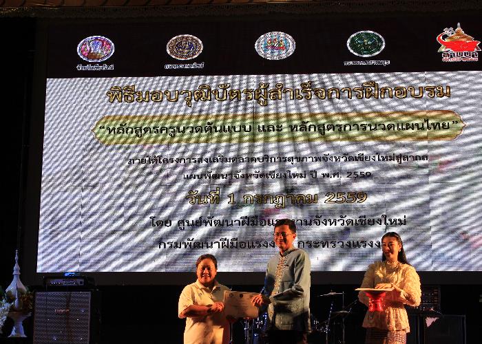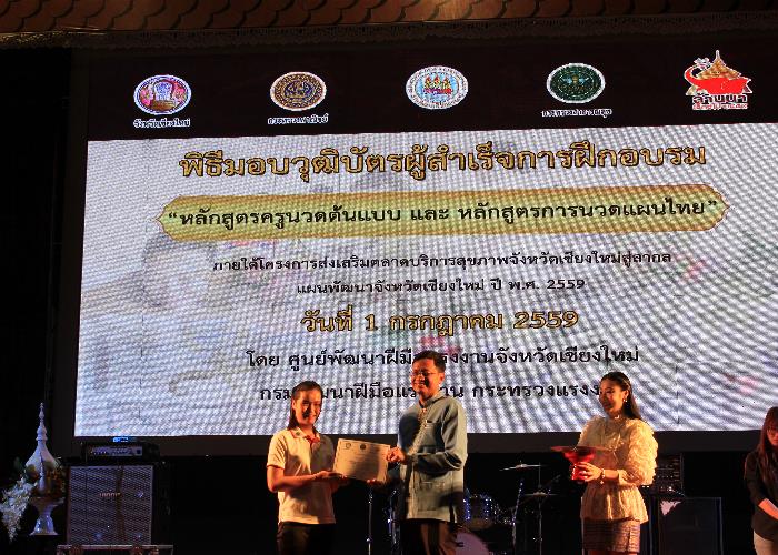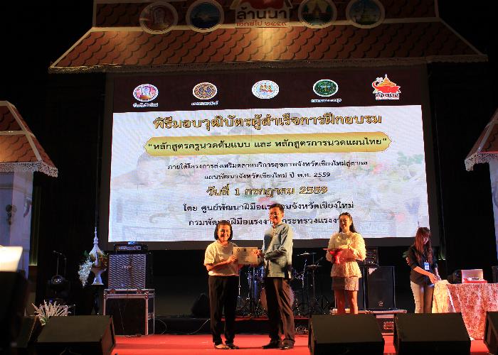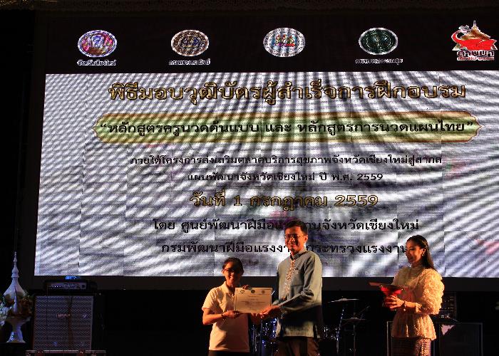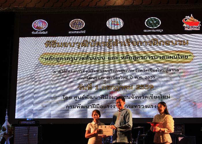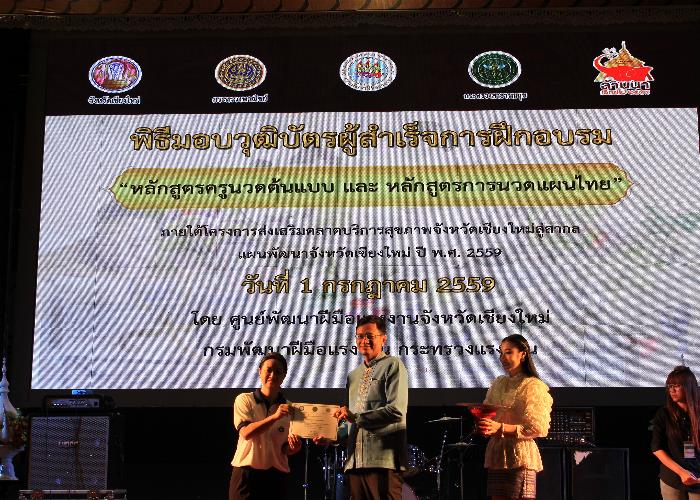 ชื่ออัลบั้ม :: ภาพการรับมอบวุฒิบัตร ผู้สำเร็จการฝึก หลักสูตรครูนวดต้นแบบ และ การนวดแผนไทย ภายใต้โครงการจังหวัดเชียงใหม่ ปี 2559