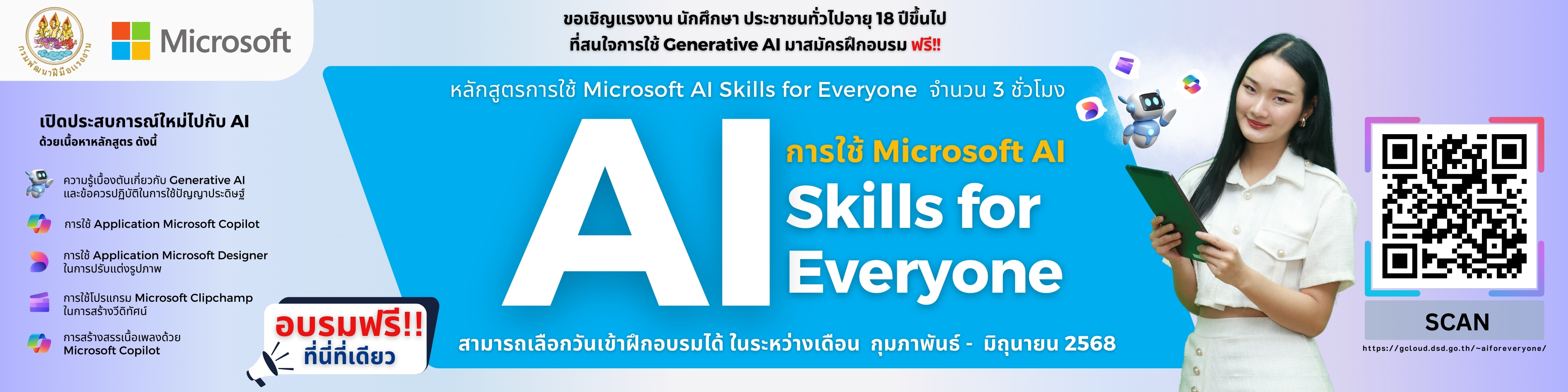 กรมพัฒนาฝีมือแรงงาน ชวนคุณมาพัฒนาทักษะยุคดิจิทัลกับ Microsoft AI Skills for Everyone!