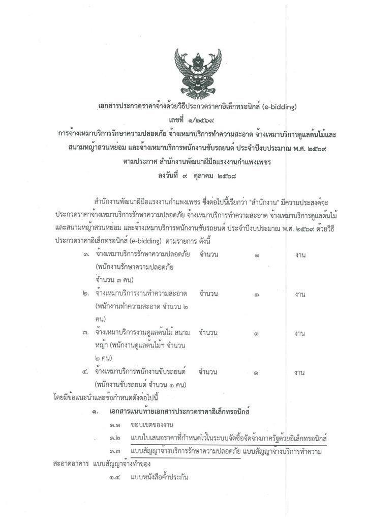 เอกสารประกวดราคาอิเล็กทรอนิกส์งานจ้างเหมาบริการประจำปีงบประมาณ พ.ศ.2569
