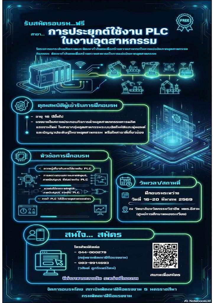ประกาศรับสมัครฝึกอบรมฟรี  หลักสูตร plc ในงานอุตสาหกรรม
