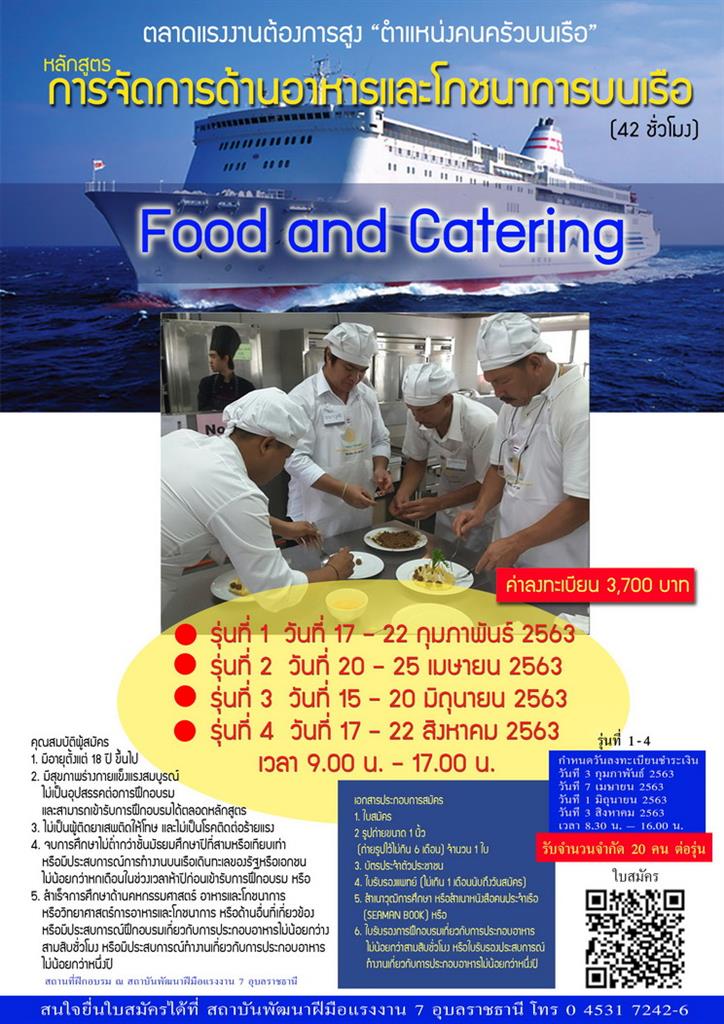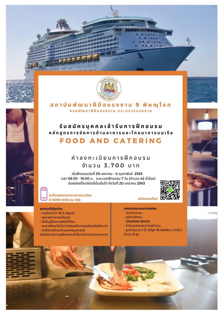 กรมพัฒนาฝีมือแรงงาน รับสมัครฝึกอบรม หลักสูตรการจัดการด้านอาหารและโภชนาการบนเรือ