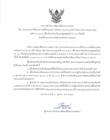 ประกาศสำนักงานพัฒนาฝีมือแรงงานพะเยา เรื่อง ประกวดราคาซื้อโครงการจัดซื้อครุภัณฑ์ รถโดยสารขนาด 12 ที่นั่ง (ดีเซล) ปริมาตรกระบอกสูบไม่ต่ำกว่า 2400 ซีซี หรือกำลังเครื่องยนต์สูงสุดไม่ต่ำกว่า 90 กิโลวัตต์ ด้วยวิธีประกวดราคาอิเล็กทรอนิกส์ (e-bidding)