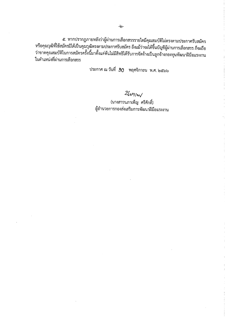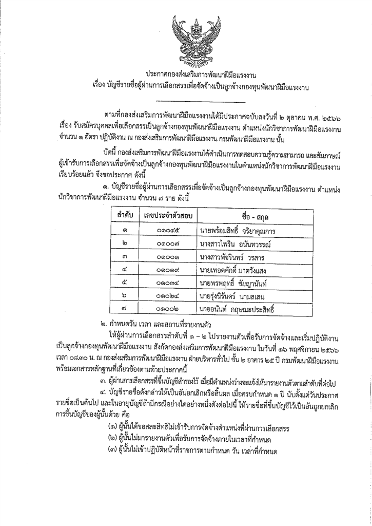 ประกาศกองส่งเสริมการพัฒนาฝีมือแรงงาน เรื่อง บัญชีรายชื่อผู้ผ่านการเลือกสรรเพื่อจัดจ้างเป็นลูกจ้างกองทุนพัฒนาฝีมือแรงงาน