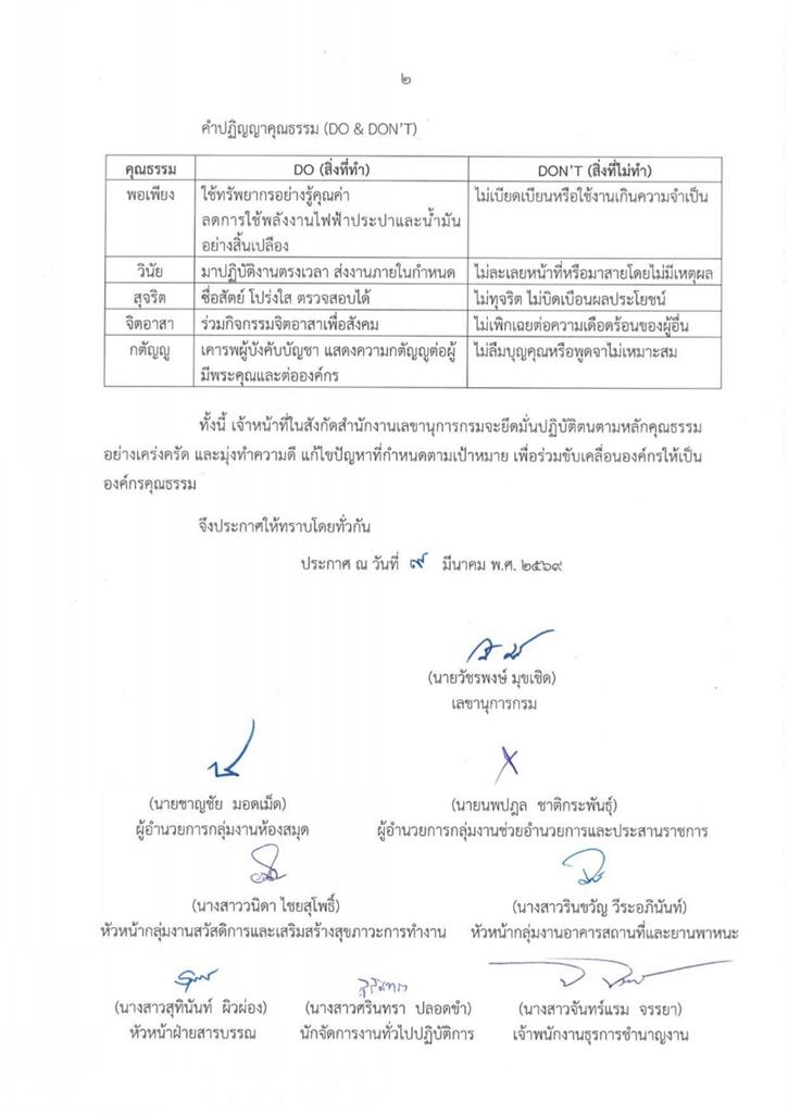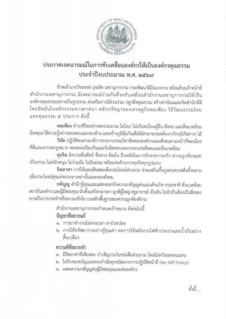 ประกาศเจตนารมณ์ในการขับเคลื่อนองค์กรให้เป็นองค์กรคุณธรรม ประจำปีงบประมาณ พ.ศ. 2569