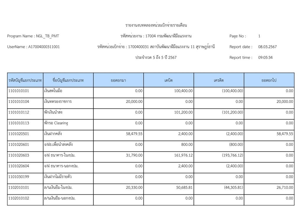 สถาบันพัฒนาฝีมือแรงงาน ๑๑ สุราษฎร์ธานี ขอเผยแพร่งบทดลองประจำเดือนกันยายน ๒๕๖๘ เพื่อให้เป็นไปตามเกณฑ์การประเมินผลการปฏิบัติงานด้านบัญชี ของส่วนราชการ โดยเผยแพร่ผ่าน Website ของสถาบันพัฒนาฝีมือแรงงาน ๑๑ สุราษฎร์ธานี และระบบสารบรรณอิเล็กทรอนิกส์ ตามเอกสารแนบ